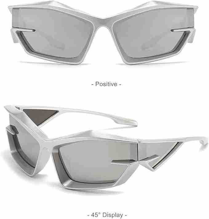 AUGEN Cool Futuristic Y2K Sunglasses Men Women Sports Wraparound Shield Cat Eye Glass Alien Space Shades (223-C6)