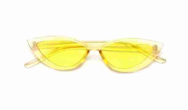 AUGEN By Visions India Retro Vintage Cateye Abstract Unisex Sunglasses UV400 Protected Large Size (Yellow, 134)