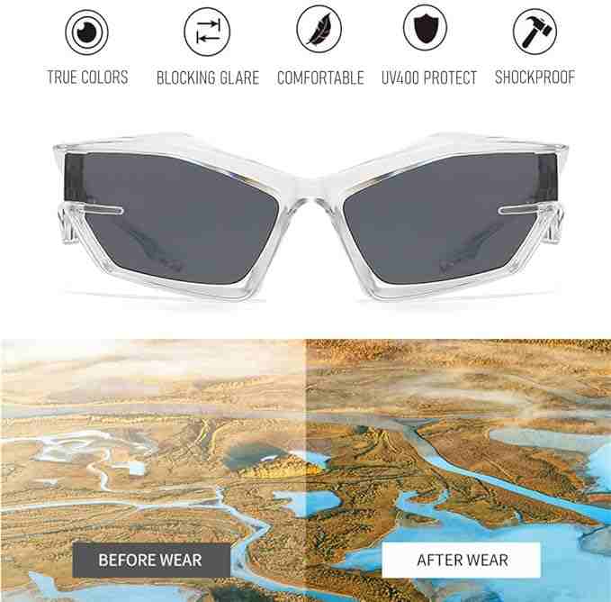 AUGEN Cool Futuristic Y2K Sunglasses Men Women Sports Wraparound Shield Cat Eye Glass Alien Space Shades (223-C1)