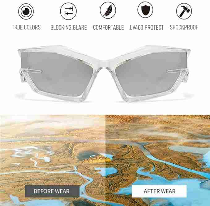 AUGEN Cool Futuristic Y2K Sunglasses Men Women Sports Wraparound Shield Cat Eye Glass Alien Space Shades (223-C6)