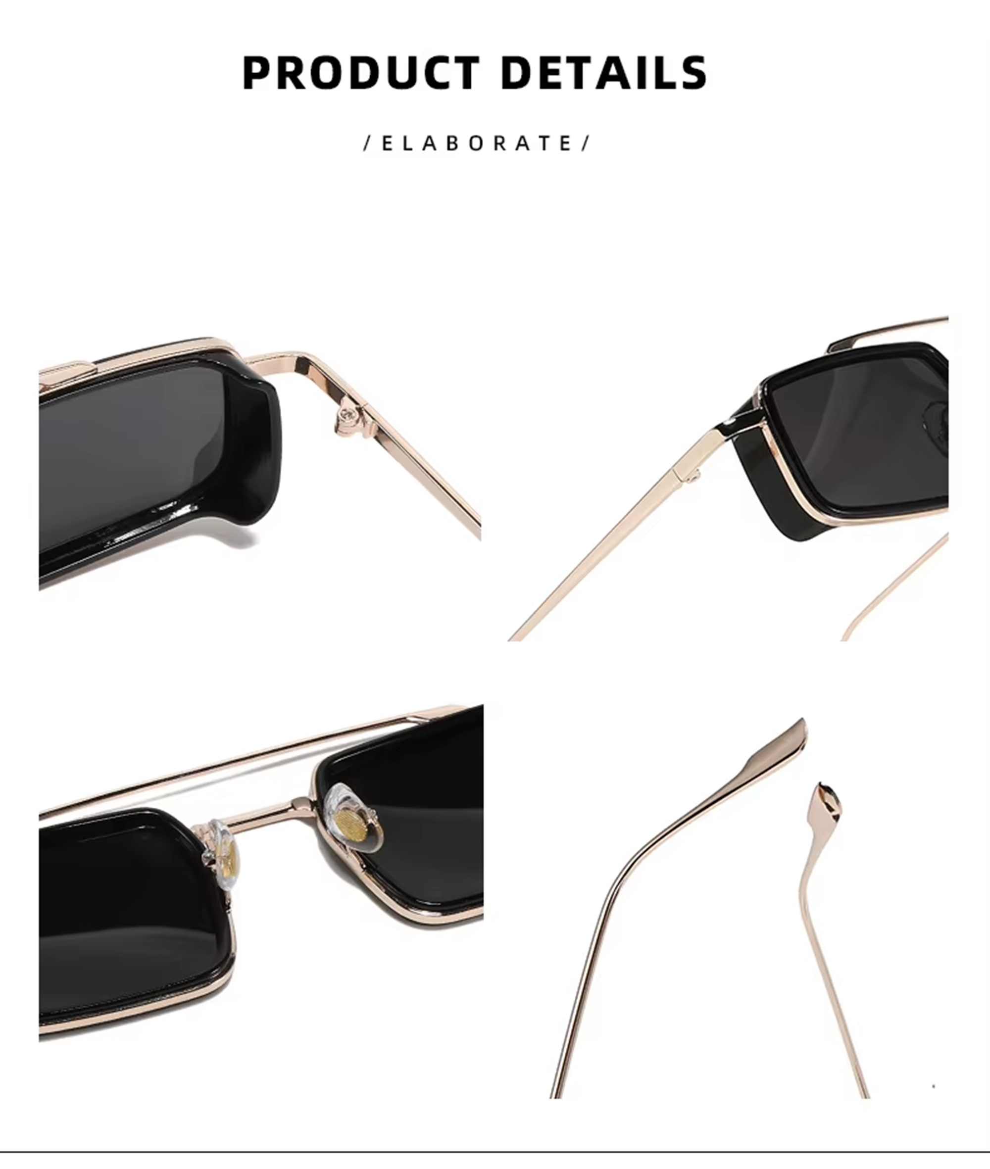 🕶 Retro Slim Rectangle Design – Trendy full-metal double bridge frame with Y2K vibes.