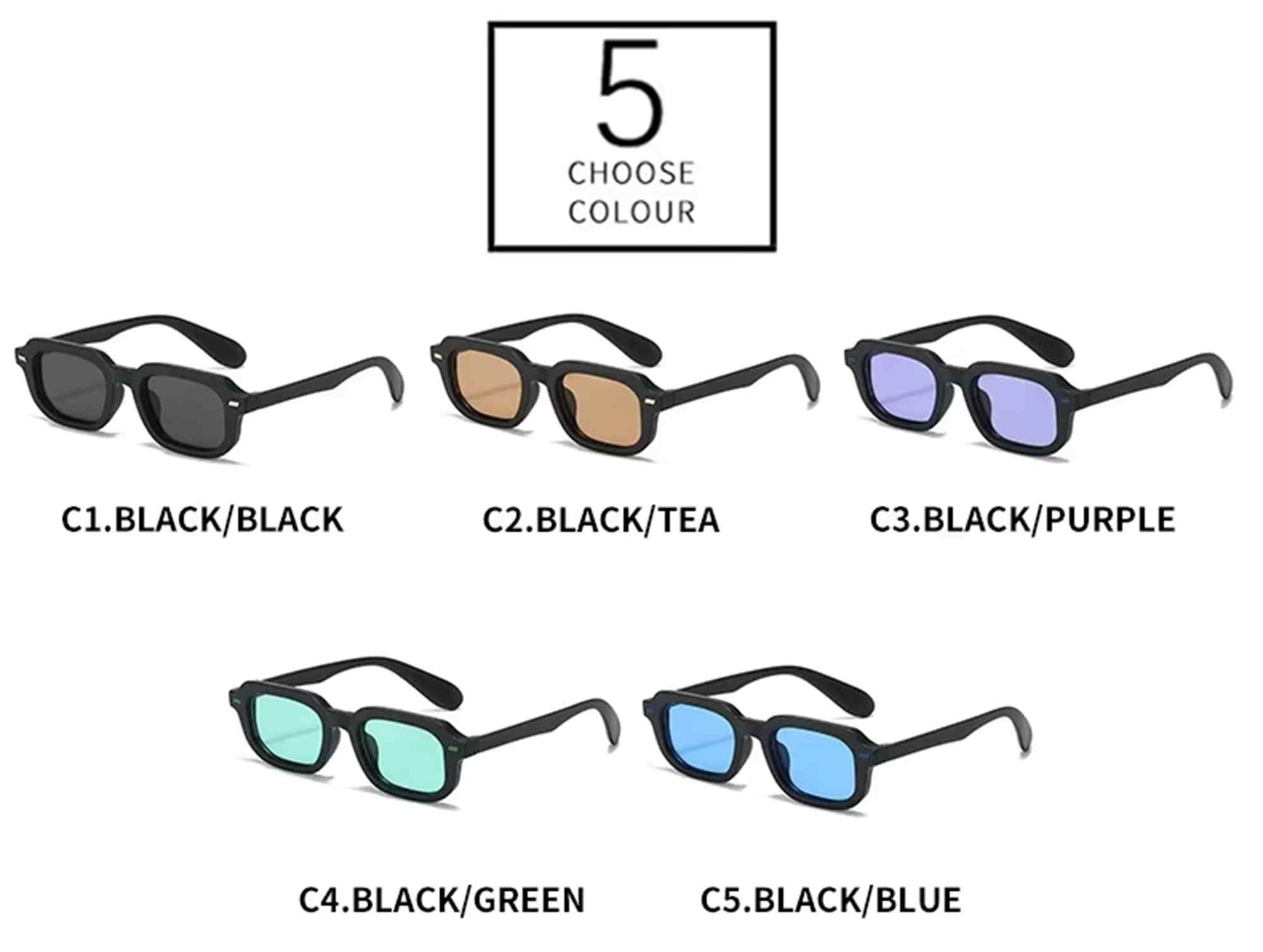 🌈 5 Lens Shades – Choose from Black, Tea, Purple, Green, or Blue to match your vibe.