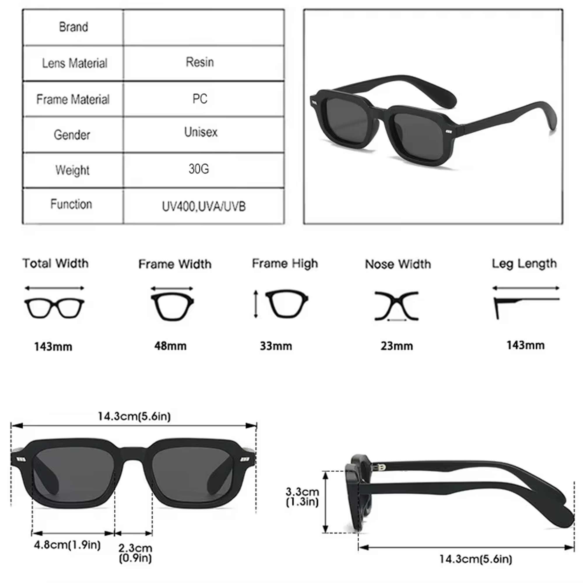Temple length: 143mm