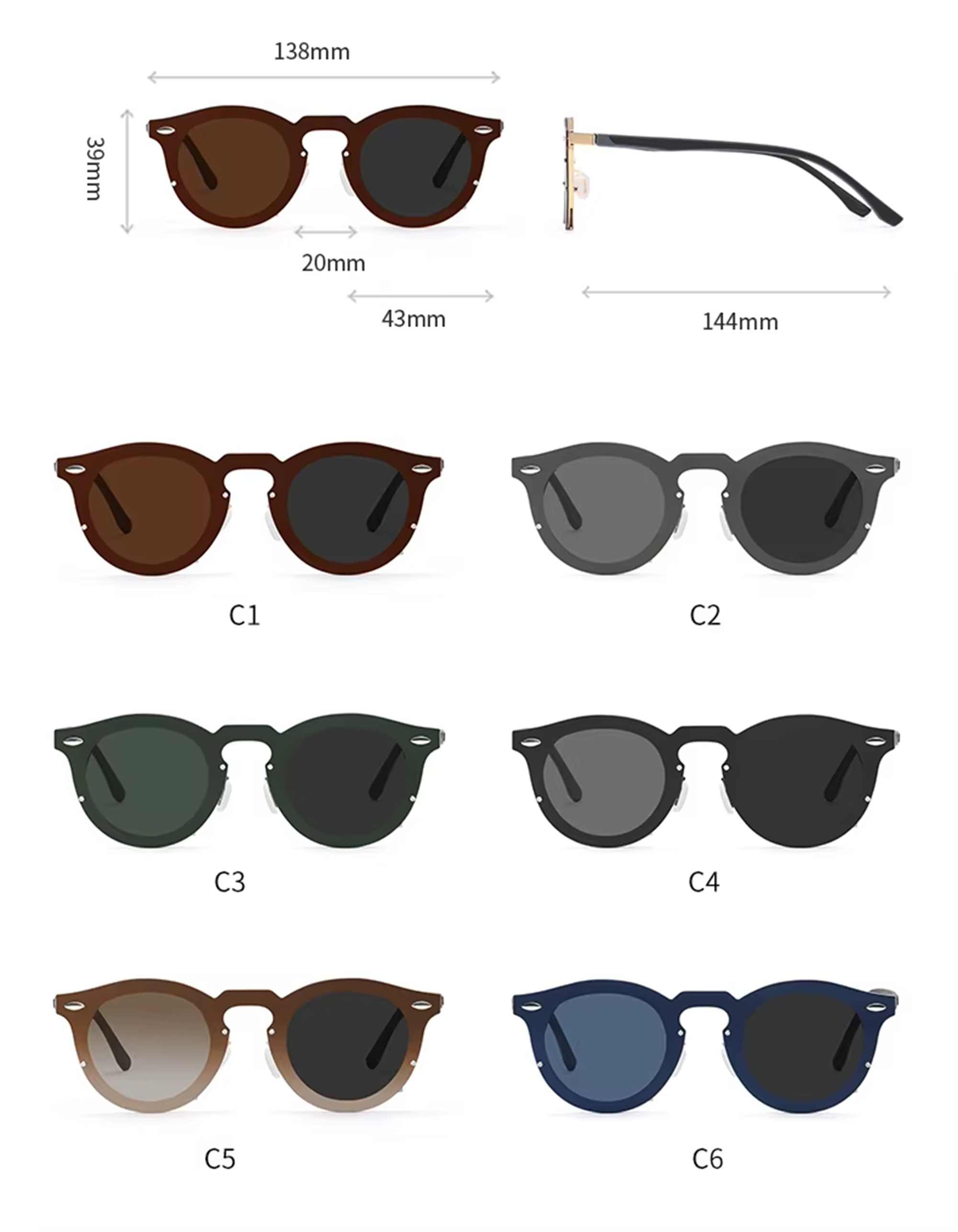 AUGEN Rotating Color Changing Sunglasses for Men & Women | Multi-Gear Manual Adjustment, UV400 Polarized Anti-Glare Lenses, Flexible Stainless Steel Frame, Classic Round Design (M274-C6)